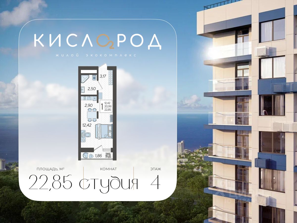 В продаже студия, площадью 22.85, расположенная Литер 13 жилого комплекса бизнес-класса "Кислород". Комплекс от девелопера AVA находится в Сочи, на северном склоне горы Бытха, в 7 минутах езды от центра города. Отличная транспортная доступность Остановка автобусов и маршрутных такси - 6 минут пешком, Курортный проспект и пляжи - 10 минут на авто, Эко-парк "Быхта" и туристические тропы - 5 минут пешком, Школы, детские сады, поликлиники, супермаркеты - 5-10 минут на авто, Ж/Д вокзал и центр города - 15 минут на транспорте, Аэропорт - 30 минут на авто. Аккуратный облик домов Жилой комплекс состоит из 15 корпусов высотой 19 этажей. Светлые фасады с голубыми акцентами и архитектурной подсветкой лучше отражают солнце и визуально не перегружают застройку. Благодаря расположению на склоне, из квартир открываются широкие панорамы, в том числе на море и эко-парк. Безопасный двор В комплексе благоустроенная территория организована как безопасное и многофункциональное пространство, где найдется место каждому. Дворы закрыты от автомобилей и прохожих, поэтому здесь тихо и безопасно для детей. На территории предусмотрены игровые площадки для детей разных возрастов, спортивное поле для футбола и баскетбола, а также уличные тренажеры - заниматься спортом можно рядом с домом, без поездок в фитнес-клуб. Для спокойного отдыха предусмотрены зоны со скамейками и прогулочные дорожки по всей территории комплекса. Собственный парк В 5 минутах ходьбы от домов будет благоустроен экологический парк "Бытха" с прогулочными, спортивными, образовательными и экстремальными маршрутами, а также детскими и спортивными площадками. Там можно интересно проводить время с детьми и друзьями, выходить на пробежку или тренировку, гулять и заниматься с питомцем. Преимущества Квартиры европланировок с двумя балконами, гардеробными и видами на несколько сторон света, Подземная, многоуровневая и наземная парковки для автомобилей жителей и гостей, Комфортно не только отдыхать, но и полноценно жить всей семьей: детские сады и школы в 5 минутах, удобная дорогая до города, магазины и сервисы поблизости.