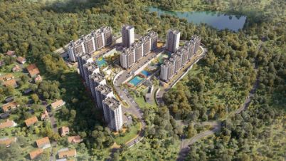 Жилой комплекс состоит из пяти корпусов высотой от 10 до 16 этажей. Сдержанные фасады в бежево-серых оттенках выглядят аккуратно и гармонируют с природным окружением, а открытые балконы добавляют облику домов легкости. Контейнеры под кондиционеры встроены в фасады и практически незаметны, благодаря чему дома сохраняют опрятный внешний вид. Комплекс расположен на склоне горы, поэтому из окон квартир на верхних этажах открываются отличные панорамные виды на лес, озеро и город: чем выше этаж, тем выразительнее пейзаж.