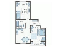 В продаже 2-комнатная квартира площадью 60.4, расположенная Литер 5 жилого комплекса комфорт+ класса "Горный квартал". Комплекс от девелопера AVA находится в Сочи, Хостинского района, в 15 минутах езды от центра города.