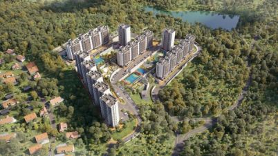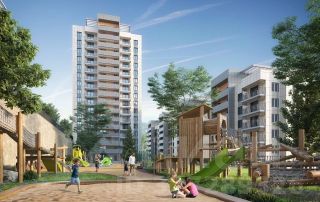 Жилой комплекс состоит из пяти корпусов высотой от 10 до 16 этажей. Сдержанные фасады в бежево-серых оттенках выглядят аккуратно и гармонируют с природным окружением, а открытые балконы добавляют облику домов легкости. Контейнеры под кондиционеры встроены в фасады и практически незаметны, благодаря чему дома сохраняют опрятный внешний вид. Комплекс расположен на склоне горы, поэтому из окон квартир на верхних этажах открываются отличные панорамные виды на лес, озеро и город: чем выше этаж, тем выразительнее пейзаж.