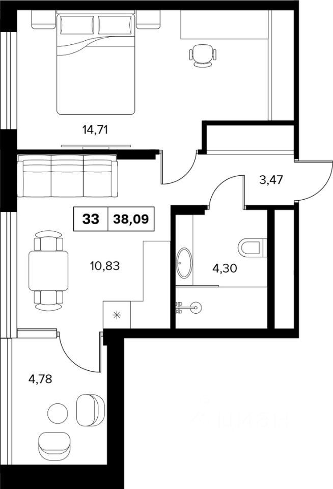 38,09 м²