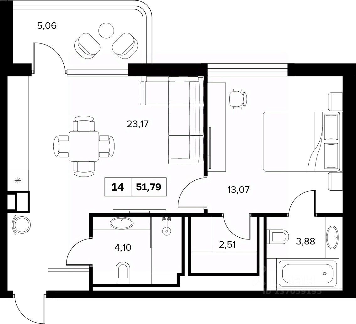 В продаже номер площадью 51.79 м² на 6 этаже в премиальном экокомплексе Белые Ночи.