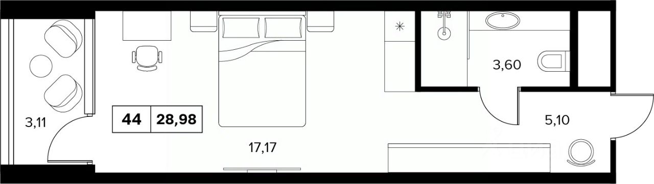 В продаже номер площадью 28.98 м² на 6 этаже в премиальном экокомплексе Белые Ночи.