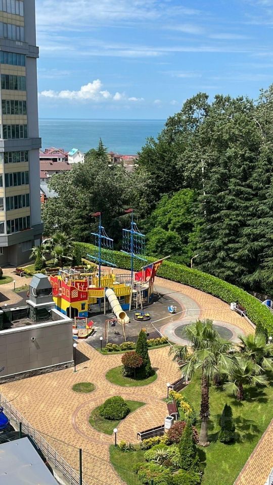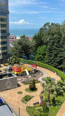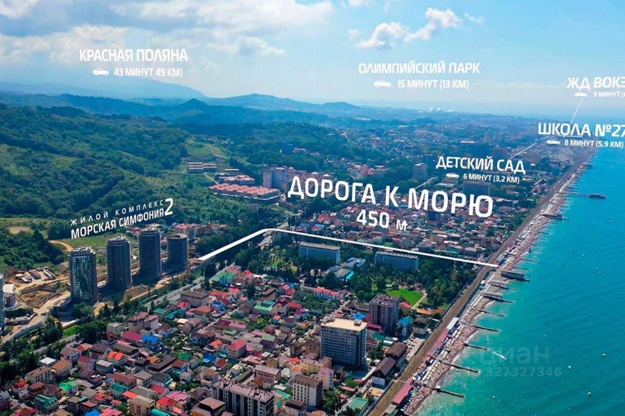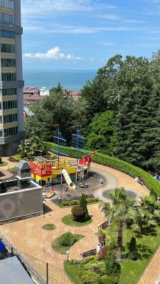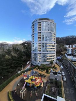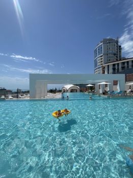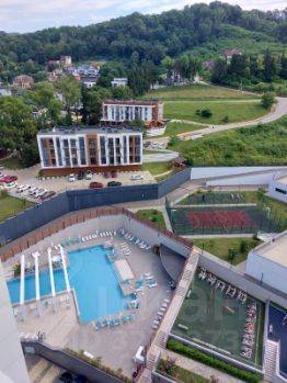 Продается 2-х комнатная с просторной лоджией в комплексе бизнес-класса с огромным бассейном и шикарным панорамным видом на море, горы, побережье Сочи и закаты .
