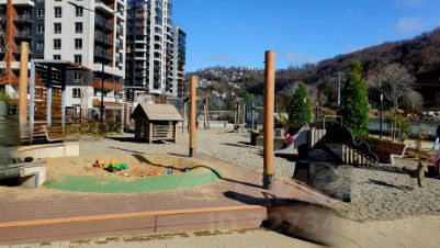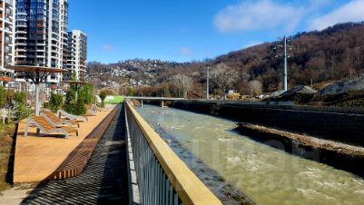 Рядом с домом великолепная оборудованная набережная вдоль горной реки с лежаками и т.д., а также детская и спортивная площадки. Прекрасное место для проведения времени на свежем воздухе. В летнее время работает кафе.