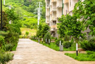 • Яркие аллеи с цветниками и кустарниками для прогулок и утренних пробежек.