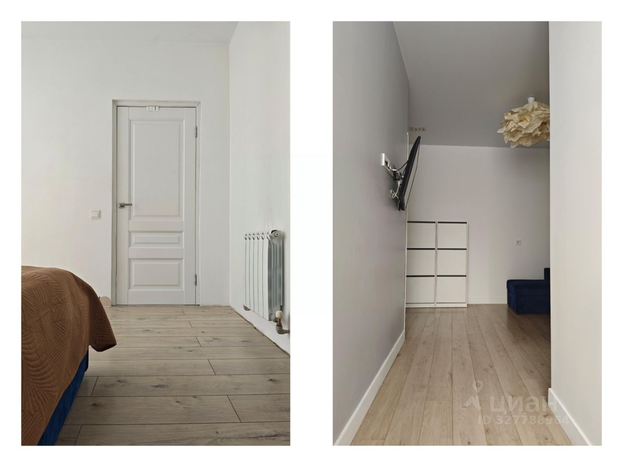Стены выровнены под покраску, окрашены. Ламинат. В ванной на полу керамогранит, электрический теплый пол. В комнатах водяные радиаторы отопления. Отопление от общедомового газового котла.
