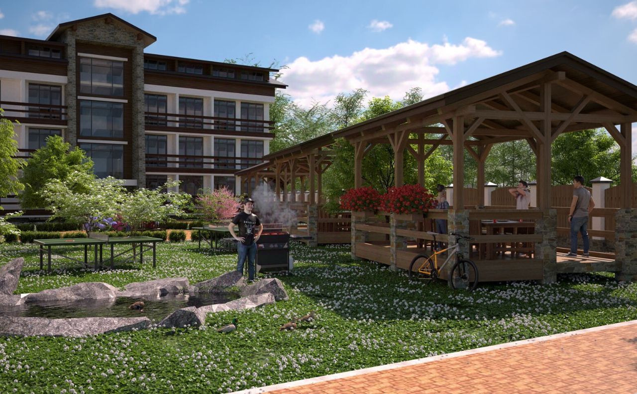 Комплекс апартаментов представлен всесезонным курортным отелем бизнес-класса из 10 домов высотой 3 и 4 этажа. Здания выполнены по монолитной технологии с комбинированными фасадами. Внутри предусмотрен круглосуточный ресепшен для комфорта жильцов. В проекте представлены апартаменты площадью от 19 до 45 кв. м с мастер-спальнями, каминами, панорамными окнами и потолками 3,15 м. Все квартиры имеют балконы с видом на горы. Помещения передаются без отделки с возможностью дозаказать комплектацию с мягкой мебелью. Предусмотрена возможность объединения соседних апартаментов. На территории действует концепция "город в городе". Территория в 1,5 га закрыта от автомобилей, обустроены зоны барбекю, летний кинотеатр, подогреваемый бассейн, спа-центр, воркаут-зона, конференц-зал, ресторан европейской кухни, пекарня и кафе, а также детская комната с няней. Жителям доступен прокат спортивного инвентаря. Комплекс расположен в Сочи, в селе Эстосадок, в окружении горных хребтов Аибга и Псехако, рядом с рекой Мзымта. В 10 минутах пешком находятся ж/д станция Эсто-Садок и подъемник, а в 5 минут транспортом — Казино Сочи, рестораны, кафе и картинг. До аэропорта Сочи — 45 минут транспортом, до центра Сочи — 1 час 30 минут.