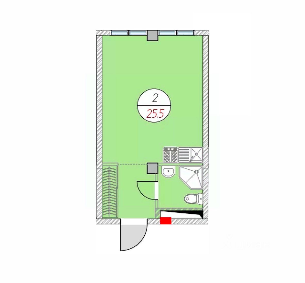 Общая площадь25,5 м²