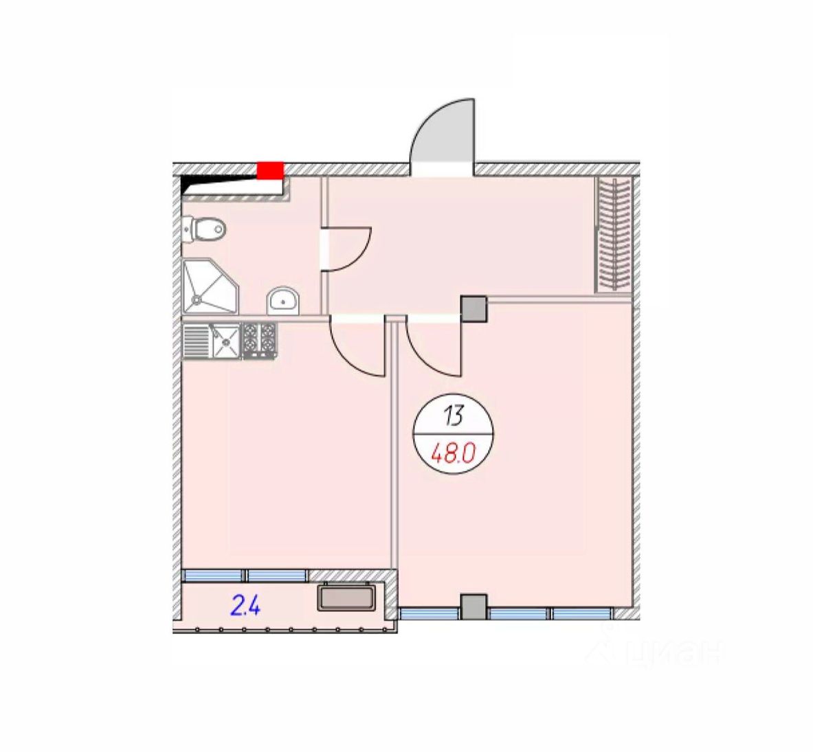 Общая площадь48 м²