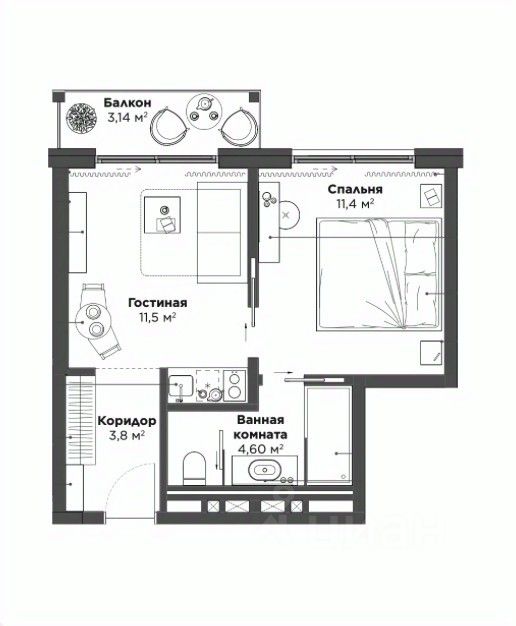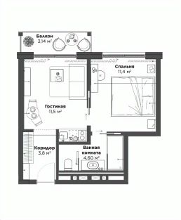 Площадь кухни11,5 м²