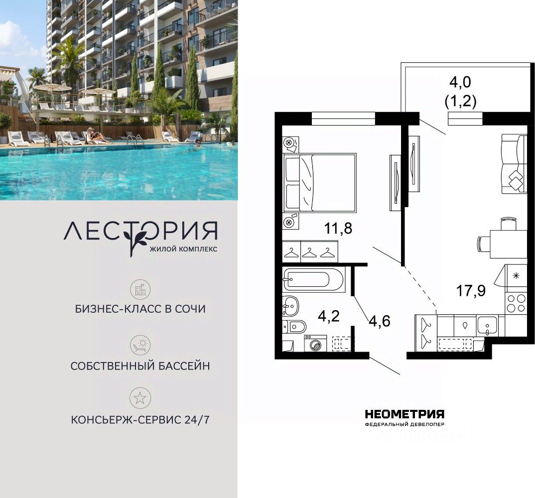Продается квартира в жилом комплексе бизнес-класса "Лестория". В составе ЖК предусмотрена собственная аквазона площадью 473 квадратных метра с двумя подогреваемыми бассейнами, что соответствуют стандартам бизнес-класса.