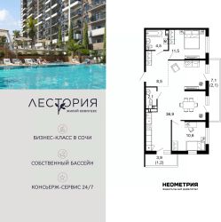 Продается квартира в жилом комплексе бизнес-класса "Лестория". В составе ЖК предусмотрена собственная аквазона площадью 473 квадратных метра с двумя подогреваемыми бассейнами, что соответствуют стандартам бизнес-класса.