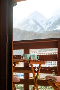 А если забраться повыше, то можно сверить часы и прогнозы лавинщиков через одно из двух мансардных окон. Ходят слухи, там даже у кого-то был пикник на крыше, но их никто не видел.