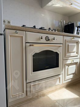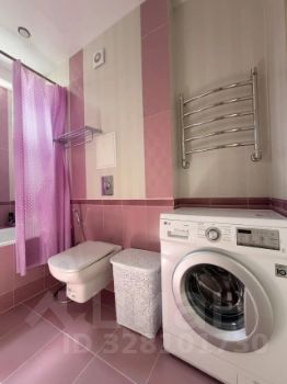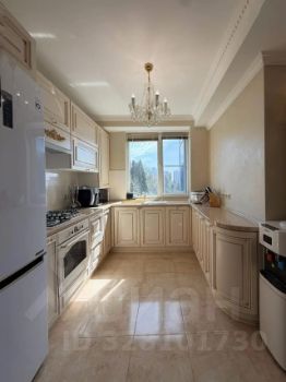 Кухня впечатляет своими размерами — 35 квадратных метров, оснащена современной техникой, включая холодильник и посудомоечную машину. Плюс кухня выполнена из дерева с фурнитурой Blum.Встроенные шкафы обеспечивают много места для хранения.В квартире установлены панорамные окна, которые наполняют пространство естественным светом. Ванная комната совмещенная, оформлена в светлых тонах с акцентами в виде розовых элементов.