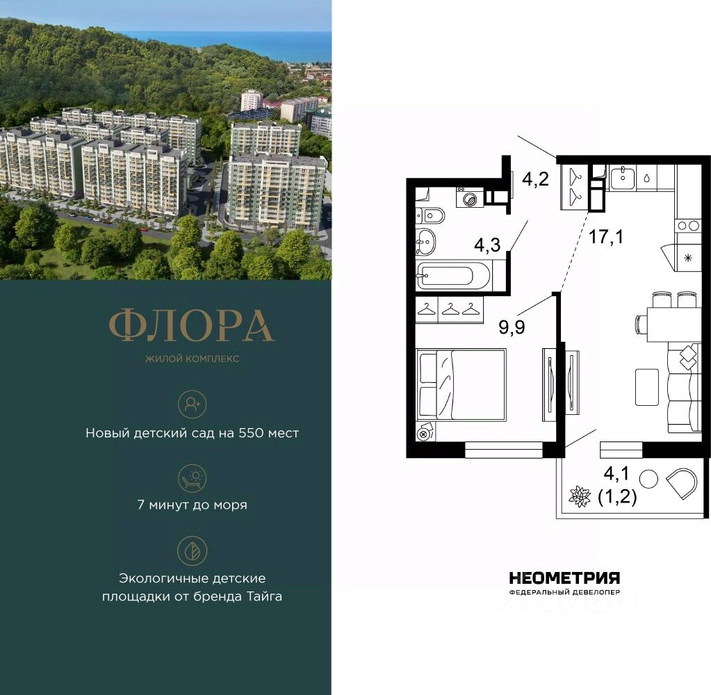 Продается квартира в ЖК "Флора" от федерального девелопера "Неометрия". Это жилой комплекс комфорт-класса в самом зеленом районе Сочи. При проектировании постарались максимально сохранить окружающую флору и фауну. Теплое море, горы, целебные источники, река, близость заповедника все это уже рядом с вами.