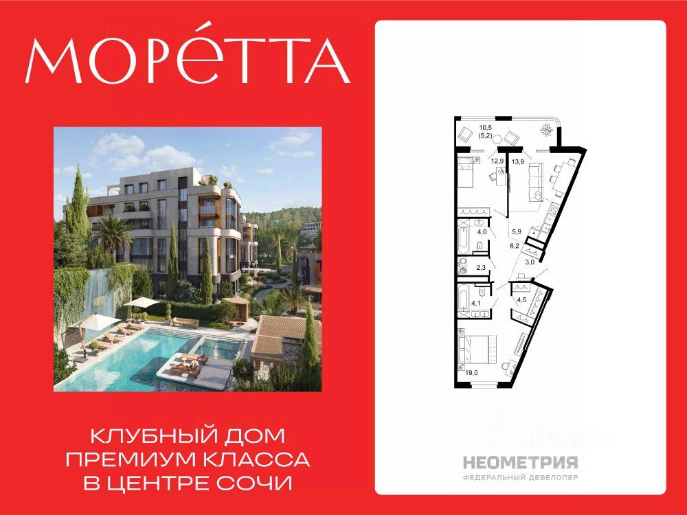 Моретта - тайное место роскошной безмятежности, первый и единственный дом-Boutique Сочи. Вас очарует камерная локация и подчеркнутая приватность. Виды на море и зелень. Авторская архитектура продолжает гармонию уникального двора-парка с водными садами и лаунж-зонами у воды.