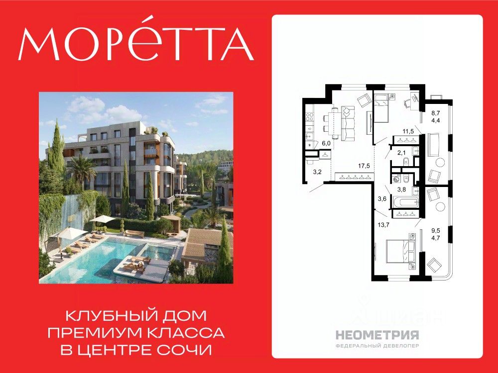 Моретта— первый и единственный премиальный жилой комплекс Сочи бутикового формата. Коллекционный дом воплощает идею тайного места роскошной безмятежности, где индивидуальный подход ощущается в каждой детали: камерной локации и подчеркнутой приватности, лимитированном числе резиденций, архитектуре и уникальном окружении, клубных привилегиях и культуре сервиса.