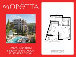 Моретта— первый и единственный премиальный жилой комплекс Сочи бутикового формата. Коллекционный дом воплощает идею тайного места роскошной безмятежности, где индивидуальный подход ощущается в каждой детали: камерной локации и подчеркнутой приватности, лимитированном числе резиденций, архитектуре и уникальном окружении, клубных привилегиях и культуре сервиса.