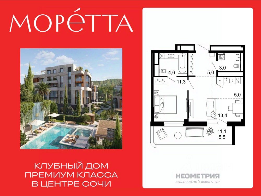 Моретта— первый и единственный премиальный жилой комплекс Сочи бутикового формата. Коллекционный дом воплощает идею тайного места роскошной безмятежности, где индивидуальный подход ощущается в каждой детали: камерной локации и подчеркнутой приватности, лимитированном числе резиденций, архитектуре и уникальном окружении, клубных привилегиях и культуре сервиса.
