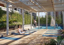 Аквазона только часть уникальной инфраструктуры "Лестории", которая включает в себя также благоустроенную территорию с пятьюдесятью функциональными зонами для прогулок, отдыха и занятий спортом, видовые террасы на крышах для отдыха, работы и встреч с друзьями, а также пространство набережной Кудепсты с шезлонгами и перголами.