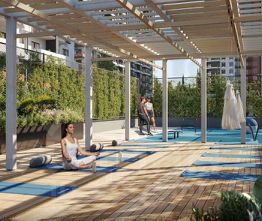 Аквазона только часть уникальной инфраструктуры "Лестории", которая включает в себя также благоустроенную территорию с пятьюдесятью функциональными зонами для прогулок, отдыха и занятий спортом, видовые террасы на крышах для отдыха, работы и встреч с друзьями, а также пространство набережной Кудепсты с шезлонгами и перголами.