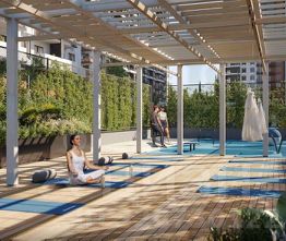 Аквазона только часть уникальной инфраструктуры "Лестории", которая включает в себя также благоустроенную территорию с пятьюдесятью функциональными зонами для прогулок, отдыха и занятий спортом, видовые террасы на крышах для отдыха, работы и встреч с друзьями, а также пространство набережной Кудепсты с шезлонгами и перголами.