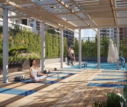 Аквазона только часть уникальной инфраструктуры "Лестории", которая включает в себя также благоустроенную территорию с пятьюдесятью функциональными зонами для прогулок, отдыха и занятий спортом, видовые террасы на крышах для отдыха, работы и встреч с друзьями, а также пространство набережной Кудепсты с шезлонгами и перголами.