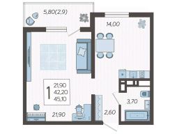 Продается 1-комнатная квартира в доме (Литер 6), срок сдачи : 3 кв. 2026, общей площадью 48 кв.м., на 14 этаже в новом современном жилом комплексе в Сочи "Горный квартал", Хостинский район. Отличный вариант для инвестиций и жизни.
