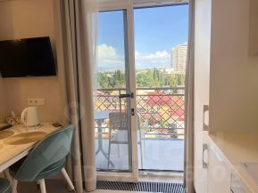 По соседству Администрация Адлерского района, для проживания семьи удобно, две школы рядом 25 и 49 (стадион которой виден из окон), детские сады, развивающие центры, кружки и секции, Детский мир, поликлиника, больница, аптеки, банки и т.д.