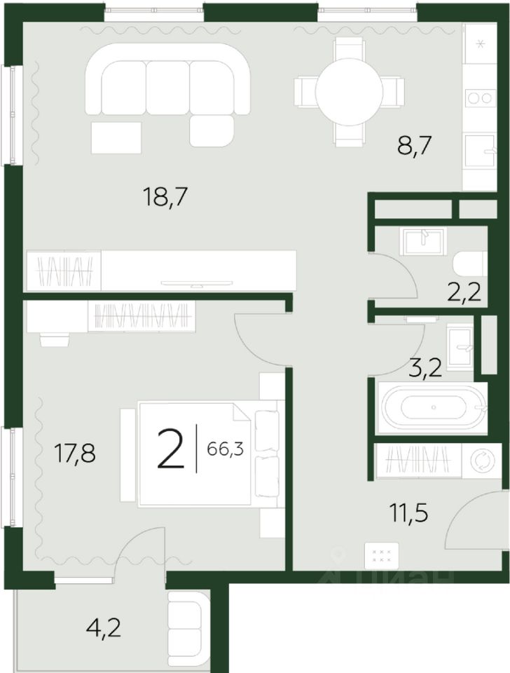 Продаются 2-комнатные апартаменты в строящемся доме (набережная Полянка, 2), срок сдачи: IV-кв. 2027, общей площадью 66.3 кв.м., на 2 этаже. Lee Prime residences (Ли прайм резиденции) - это пятизвездочный комплекс апартаментов в центре туристического района Роза Хутор в Красной Поляне. Расположен на главном променаде всесезонного курорта Роза Хутор - на набережной горной реки Мзымта. Lee Prime находится в нескольких шагах от горнолыжных подъёмников, в окружении аутентичных ресторанов и гостеприимных сувенирных бутиков.