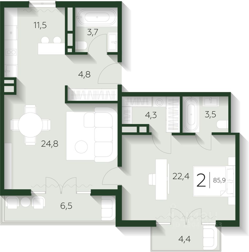 Продаются 2-комнатные апартаменты в строящемся доме (набережная Полянка, 2), срок сдачи: IV-кв. 2027, общей площадью 85.9 кв.м., на 2 этаже. Lee Prime residences (Ли прайм резиденции) - это пятизвездочный комплекс апартаментов в центре туристического района Роза Хутор в Красной Поляне. Расположен на главном променаде всесезонного курорта Роза Хутор - на набережной горной реки Мзымта. Lee Prime находится в нескольких шагах от горнолыжных подъёмников, в окружении аутентичных ресторанов и гостеприимных сувенирных бутиков.