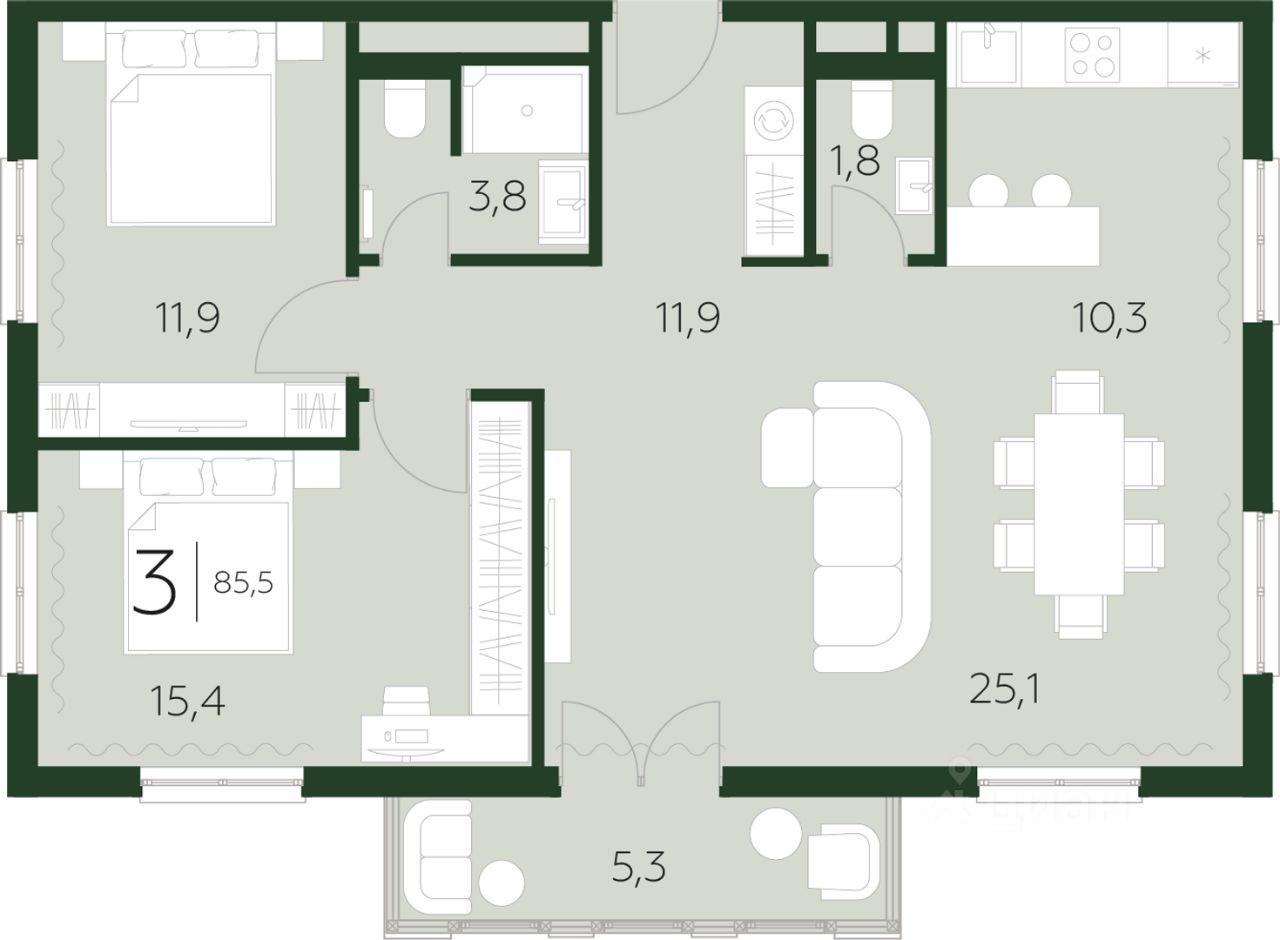 Продаются 3-комнатные апартаменты в строящемся доме (набережная Полянка, 2), срок сдачи: IV-кв. 2027, общей площадью 85.5 кв.м., на 5 этаже. Lee Prime residences (Ли прайм резиденции) - это пятизвездочный комплекс апартаментов в центре туристического района Роза Хутор в Красной Поляне. Расположен на главном променаде всесезонного курорта Роза Хутор - на набережной горной реки Мзымта. Lee Prime находится в нескольких шагах от горнолыжных подъёмников, в окружении аутентичных ресторанов и гостеприимных сувенирных бутиков.