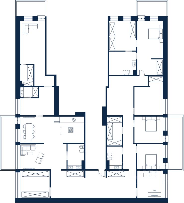 Продаются 6-комнатные апартаменты в строящемся доме (Дом 2), срок сдачи: II-кв. 2028, общей площадью 357.31 кв.м., на 2 этаже. Volna Residence - это комплекс для жизни на территории комплекса Volna, объединённый с отелем общей концепцией и инфраструктурой. 3 малоэтажных корпуса на 520 номеров расположены на первой береговой линии и имеют собственный бассейн.