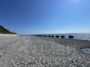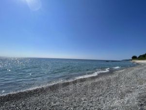 До моря и ж/д станции 5-7 минут ходьбы по ровной пешеходной дорожке. Пляж отличный.