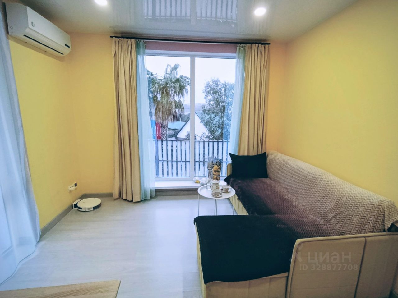 В квартире сделан современный евроремонт, панорамные окна с видом на горы и пальмы выходят на восток, что является огромным преимуществом: нет летнего полуденного пекла.