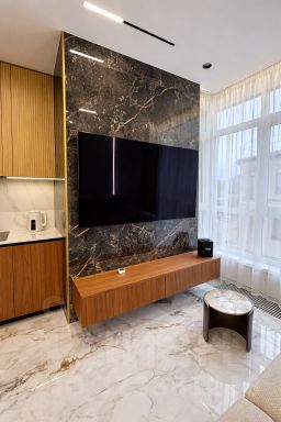 - Квартире сделан дорогой ремонт из премиальных материалов . (Вся плитка Испания, сантехника Италия Paffoni, напольное покрытие Италия, панели и багеты Orac, декор и дверные ручки - латунь. Сделана полная шумоизоляция soundgard (полы, потолок и стены).