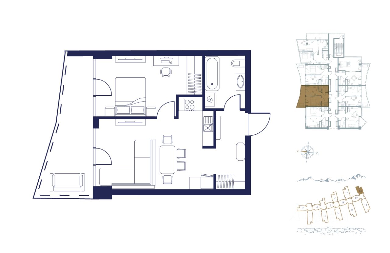 Апартаменты 47,7 м², 13 корпус, 4 этаж с видом в сторону гор