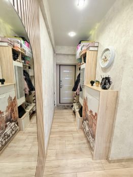 В квартире изолированные комнаты, что обеспечивает комфорт и приватность. Ванная комната совмещенная, оформлена стильными геометрическими узорами и оборудована качественной сантехникой. В прихожей предусмотрены вместительные шкафы для хранения вещей.