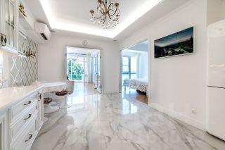 Красивая, воздушная квартира с панорамным видом на море, солнечная сторона, теплая, светлая, с дизайнерским ремонтом. Самые качественные материалы, работы выполнены действительно мастерами! Квартира расположена между центром Сочи и Хостой, до моря 5 минут неспешным шагом. Рядом дикий и организованный пляжи. Удачное расположение позволяет добраться за 20 минут как до центра Сочи, так и до аэропорта. Рядом остановка общественного транспорта в Адлер и в Сочи. Рядом магазины и садик. Квартира состоит из кухни-столовой, двух спален, двух санузлов (в одном ванна, в другом душ), лоджии(6м), гардеробной(3м), кладовой(3 м). Планировка квартиры позволяет при открытых дверях(раздвижные стеклянные)спален превратить квартиру в одно большое пространство. Отопление теплые полы (газовый двухконтурный котел Baxi), для межсезонья-электрический теплый пол в зоне кухни (Devi). Кондиционер (Daikin).