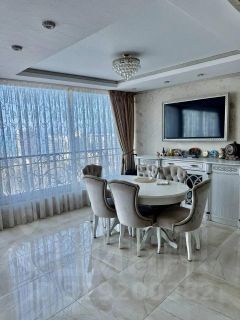 Продается просторная квартира в сердце Сочи, расположенная по адресу: Нагорная улица, 16. Общая площадь квартиры составляет 145 кв. м, жилая площадь — 100 кв. м, а кухня занимает 30 кв. м. Квартира находится на 16 этаже монолитного дома 2013 года постройки, поэтому из окон открывается потрясающий вид на город. Высота потолков — 3 метра, а свободная планировка позволяет обустроить пространство по своему вкусу.