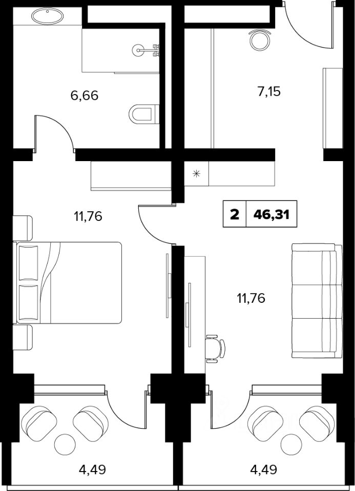 В продаже номер площадью 46.31 м² на 16 этаже в премиальном экокомплексе Белые Ночи.