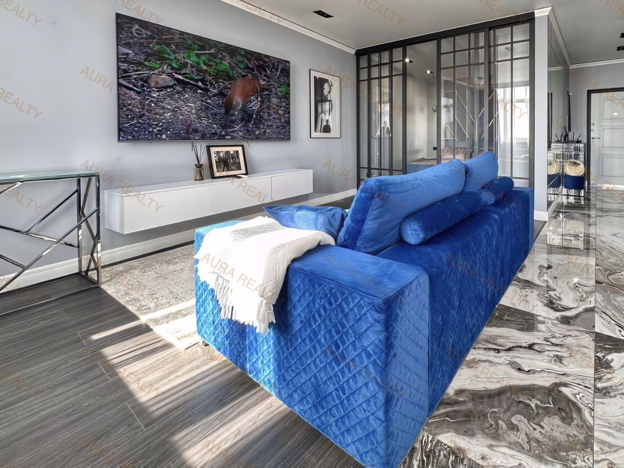 Недвижимость отличается высококачественной отделкой, выполненной по индивидуальному проекту с применением дорогих материалов. Кухонный гарнитур, встроенная техника и корпусная мебель были подобраны и установлены в соответствии с дизайнерским решением.