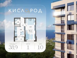 В продаже 1-комнатная квартира, площадью 38.9, расположенная Литер 1 жилого комплекса бизнес-класса "Кислород". Комплекс от девелопера AVA находится в Сочи, на северном склоне горы Бытха, в 7 минутах езды от центра города.