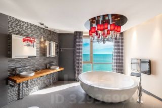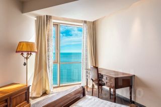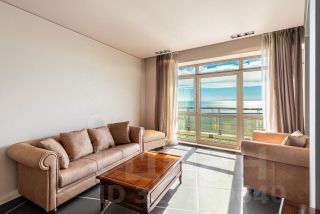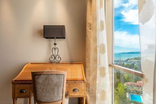 Квартира площадью 75м² находится на высоком этаже и открывает захватывающие панорамные виды на море из всех окон.