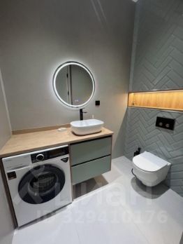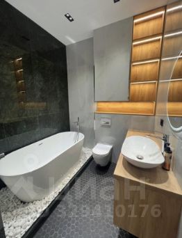 Санузел выполнен в современном стиле и оснащен качественной сантехникой.