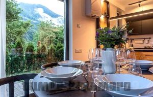 Комплекс элит-класса, который состоит из девяти 4-х этажных зданий и клубного дома. Апартамент расположен в поселке Красная Поляна, на улице Защитников Кавказа.