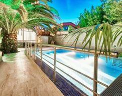 гостевой дом и земельный участок 6,7 соток. дом на 16 номеров с удобствами. Два нежилых помещения по фасадной части сдаются в аренду. На территории открытый бассейн с подогревом. Установлено видеонаблюдение, пожарная сигнализация, WiFi. До набережной 3-5минут прогулочным шагом. Рядом минимаркеты и кафе