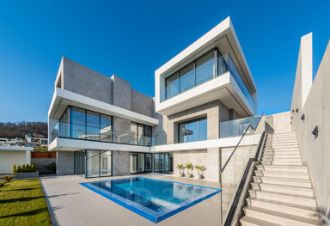 - Комбинированные утеплённые фасады с системой водоотведения и продуманной дренажной системой террас и придомовой территории. Фасад - декоративная итальянская штукатурка.