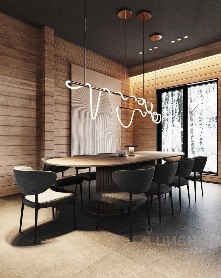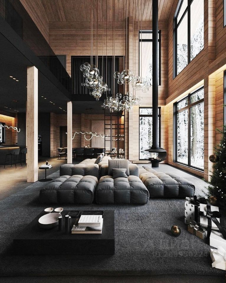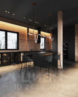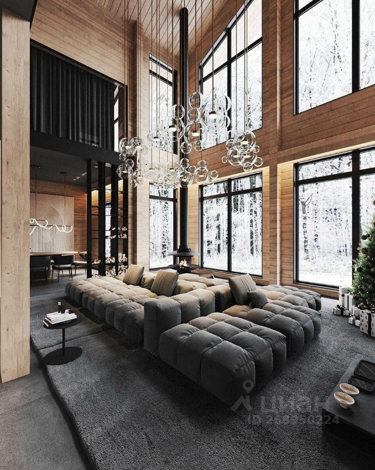 На первом этаже гостиная с зоной кухни, спальная комната для гостей, бильярдная, сауна.